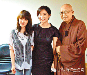 【圖:聖嚴法師和弟子蔡依林、林青霞合照】
