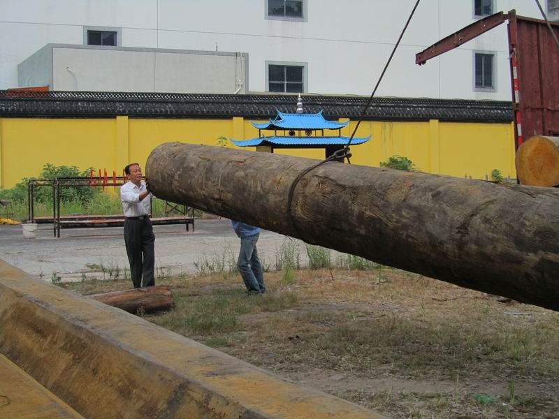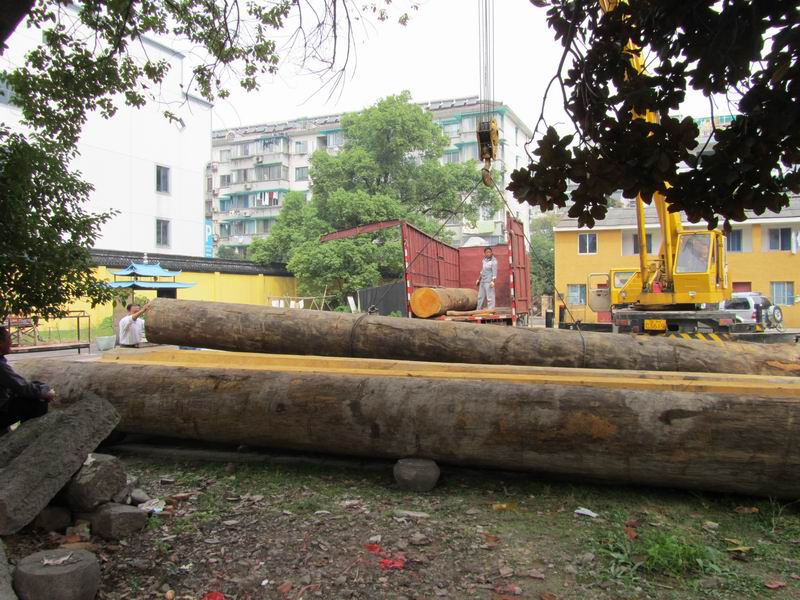 大雄寶殿非洲木柱已運抵天寧寺